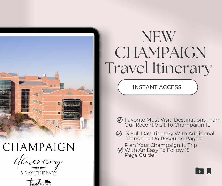 The only Champaign IL Itinerary you will need to help you plan a memorable trip. Our 15-page itinerary, meticulously crafted for the Modern Traveler or Family, ensures that your journey is not just memorable but also seamlessly planned.